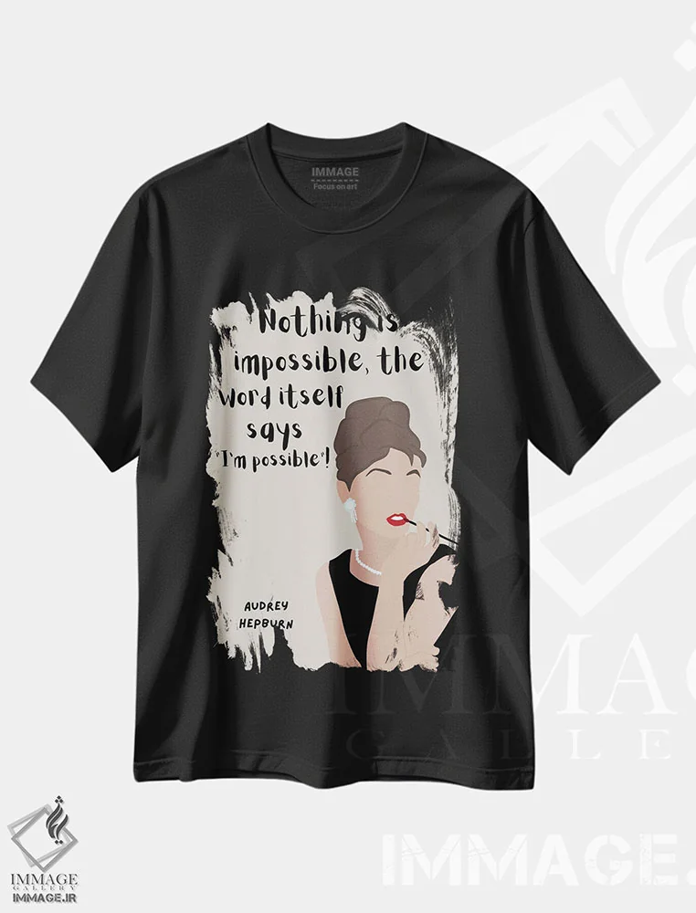 تیشرت مشکی طرح دار نقل قول هپبورن، هنر دیجیتال اثر برینی پرینتیبلز | فروشگاه ایماژ تیشرت طرح دار نقل قول هپبورن اثر برینی پرینتیبلز