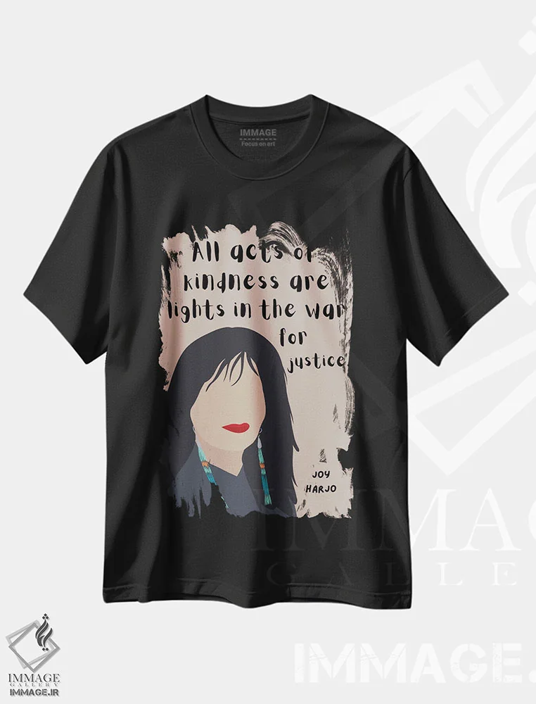 تیشرت مشکی طرح دار نقل قول جوی هارجو، هنر دیجیتال اثر برینی پرینتیبلز | فروشگاه ایماژ تیشرت طرح دار نقل قول جوی هارجو اثر برینی پرینتیبلز