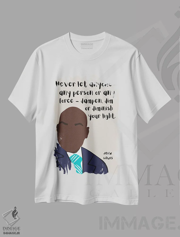 تیشرت سفید طرح دار نقل قول جان لوئیس، هنر آمریکایی آفریقایی تبار اثر برینی پرینتیبلز | فروشگاه ایماژ تیشرت طرح دار نقل قول جان لوئیس اثر برینی پرینتیبلز