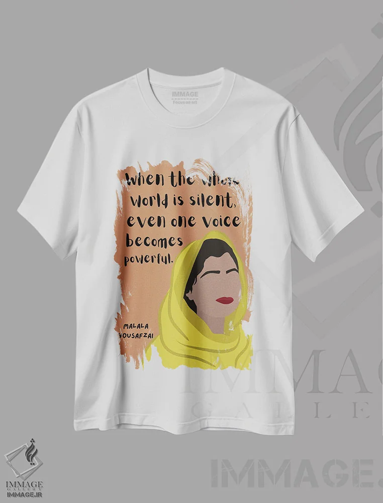 تیشرت سفید طرح دار نقل قول ملاله یوسف زی، هنر دیجیتال اثر برینی پرینتیبلز | فروشگاه ایماژ تیشرت طرح دار نقل قول ملاله یوسف زی اثر برینی پرینتیبلز