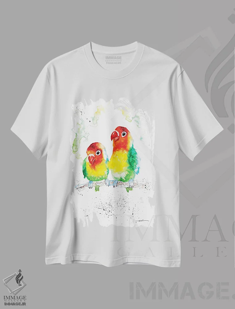 تیشرت سفید طرح دار مرغان عاشق، مدیوم اثر بیبزآرتس | فروشگاه ایماژ تیشرت طرح دار مرغان عاشق اثر بیبزآرتس