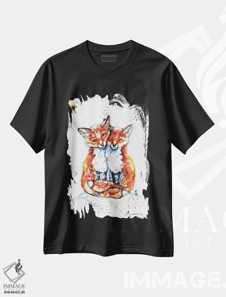 تیشرت مشکی طرح دار روباه های عاشق، مدیوم اثر بیبزآرتس | فروشگاه ایماژ تیشرت طرح دار روباه های عاشق اثر بیبزآرتس