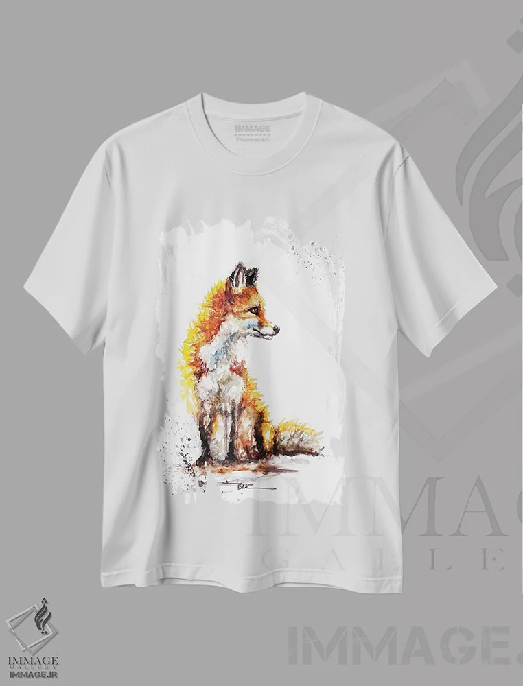 تیشرت سفید طرح دار روباه مراقب، مدیوم اثر بیبزآرتس | فروشگاه ایماژ تیشرت طرح دار روباه مراقب اثر بیبزآرتس