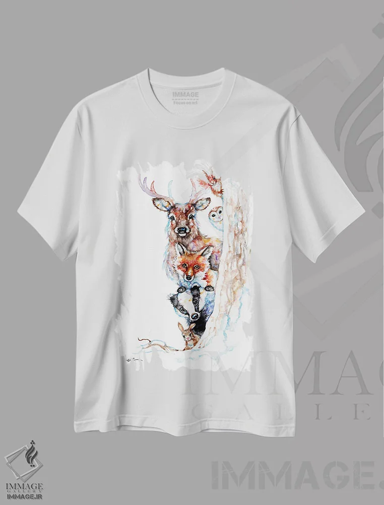 تیشرت سفید طرح دار سنجاب پائیزی، مدیوم اثر بیبزآرتس | فروشگاه ایماژ تیشرت طرح دار سنجاب پائیزی اثر بیبزآرتس