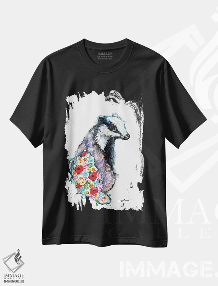 تیشرت مشکی طرح دار گورکن شکوفه دهنده، مدیوم اثر بیبزآرتس | فروشگاه ایماژ تیشرت طرح دار گورکن شکوفه دهنده اثر بیبزآرتس
