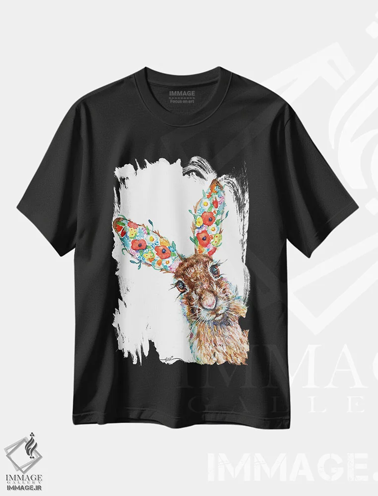 تیشرت مشکی طرح دار خرگوش گیاهی، مدیوم اثر بیبزآرتس | فروشگاه ایماژ