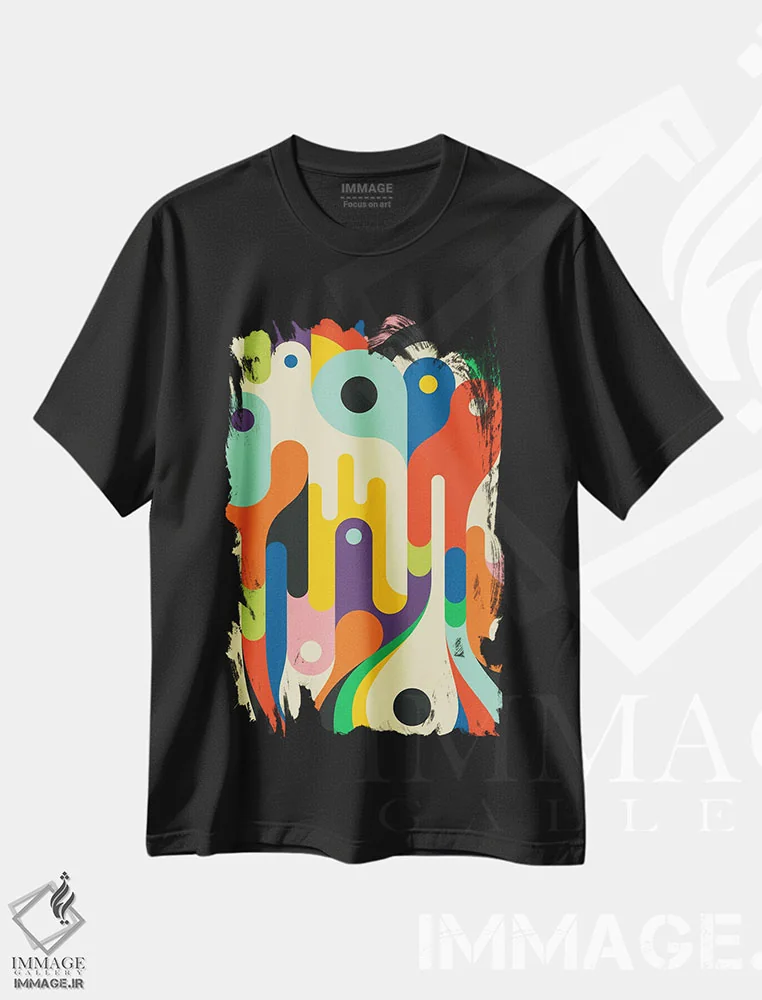 تیشرت مشکی طرح دار تیک تاک ۲۳، آبستره اثر جازبری بلو | فروشگاه ایماژ تیشرت طرح دار تیک تاک اثر جازبری بلو