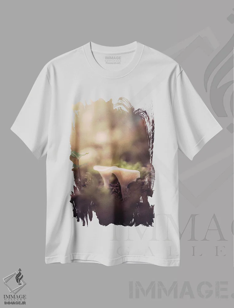 تیشرت سفید طرح دار قارچ در جنگل، عکاسی ماکرو اثر جفرسون کاستلاری | فروشگاه ایماژ تیشرت طرح دار قارچ در جنگل اثر جفرسون کاستلاری