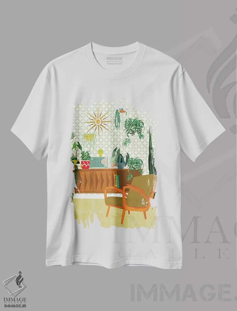 تیشرت طرح دار اتاق نشیمن با گیاهان اثر جن بوچلی