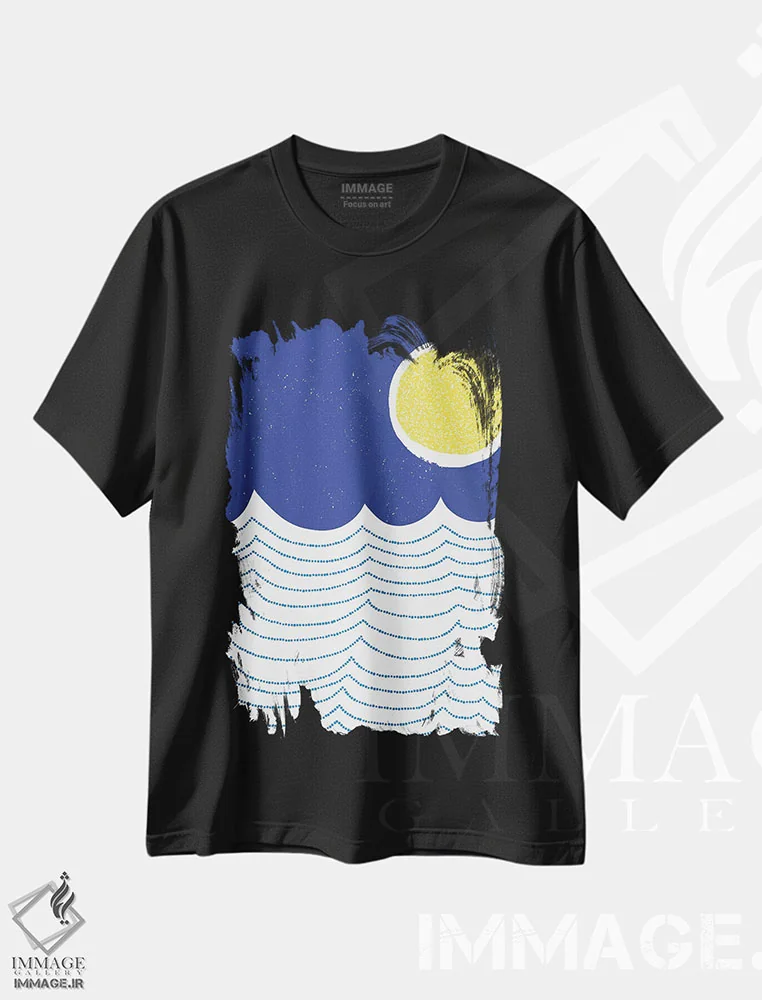 تیشرت مشکی طرح دار سانتورینی، تزئینی اثر جن بوچلی | فروشگاه ایماژ