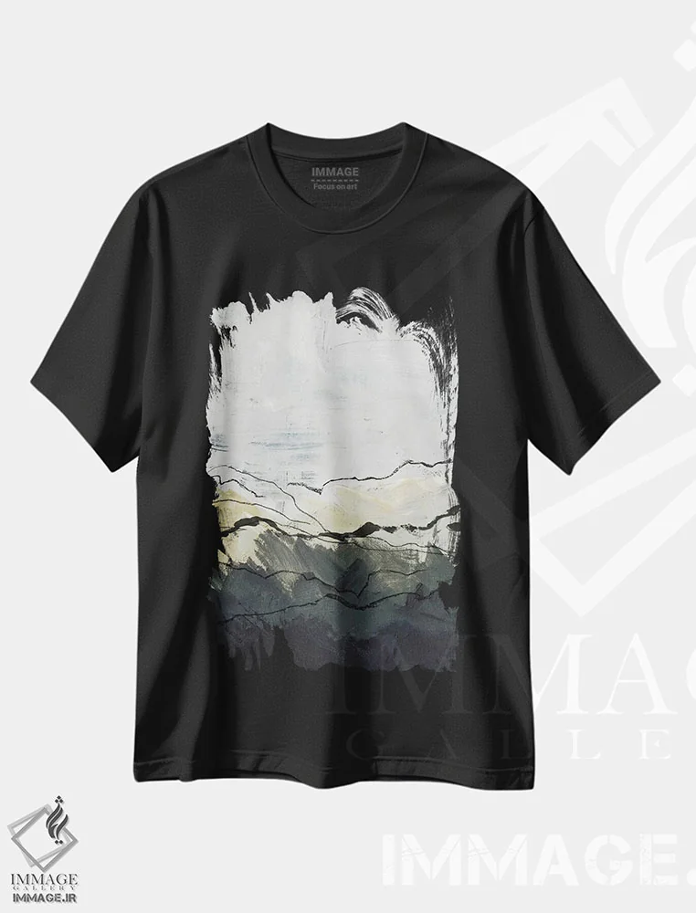 تیشرت مشکی طرح دار کوهستان های زمستانی ۱، آبستره اثر جنیفر پکستون پارکر | فروشگاه ایماژ
