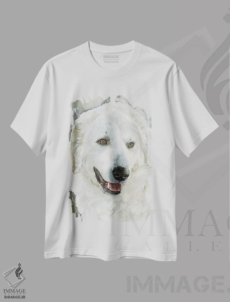 تیشرت سفید طرح دار سگ مقدس تبت اثر جودیت استاین | فروشگاه ایماژ تیشرت طرح دار سگ مقدس تبت اثر جودیت استاین