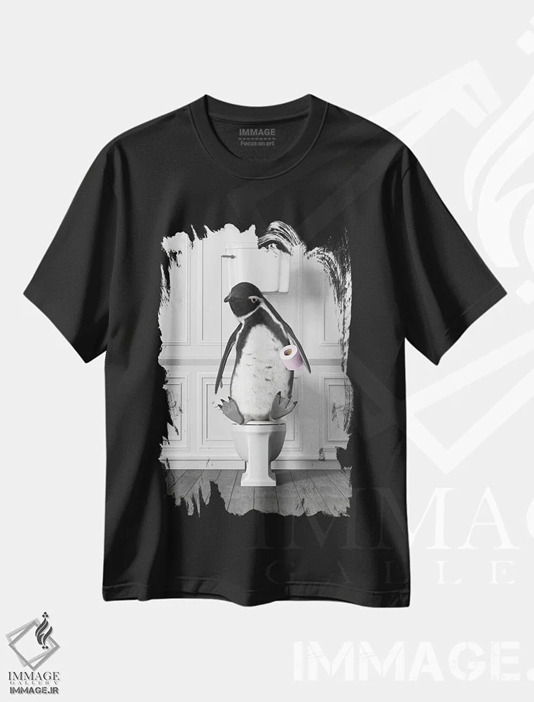 تیشرت مشکی طرح دار پنگوئن در توالت، هنر دیجیتال اثر جوفری فیلیپ | فروشگاه ایماژ تیشرت طرح دار پنگوئن در توالت اثر جوفری فیلیپ