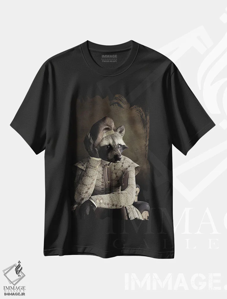 تیشرت مشکی طرح دار پرتره راکون به سبک رنسانس قدیمی، هنر دیجیتال اثر جوفری فیلیپ | فروشگاه ایماژ تیشرت طرح دار پرتره راکون به سبک رنسانس قدیمی اثر جوفری فیلیپ