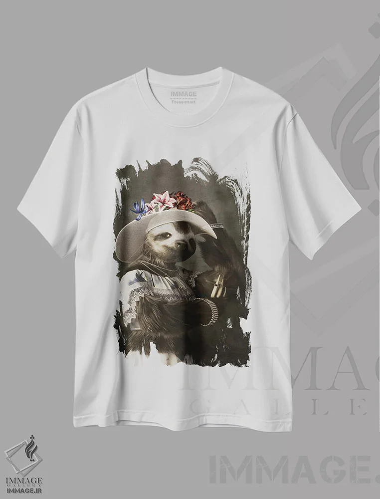 تیشرت سفید طرح دار پرتره تنبل به سبک رنسانس قدیمی، هنر دیجیتال اثر جوفری فیلیپ | فروشگاه ایماژ تیشرت طرح دار پرتره تنبل به سبک رنسانس قدیمی اثر جوفری فیلیپ