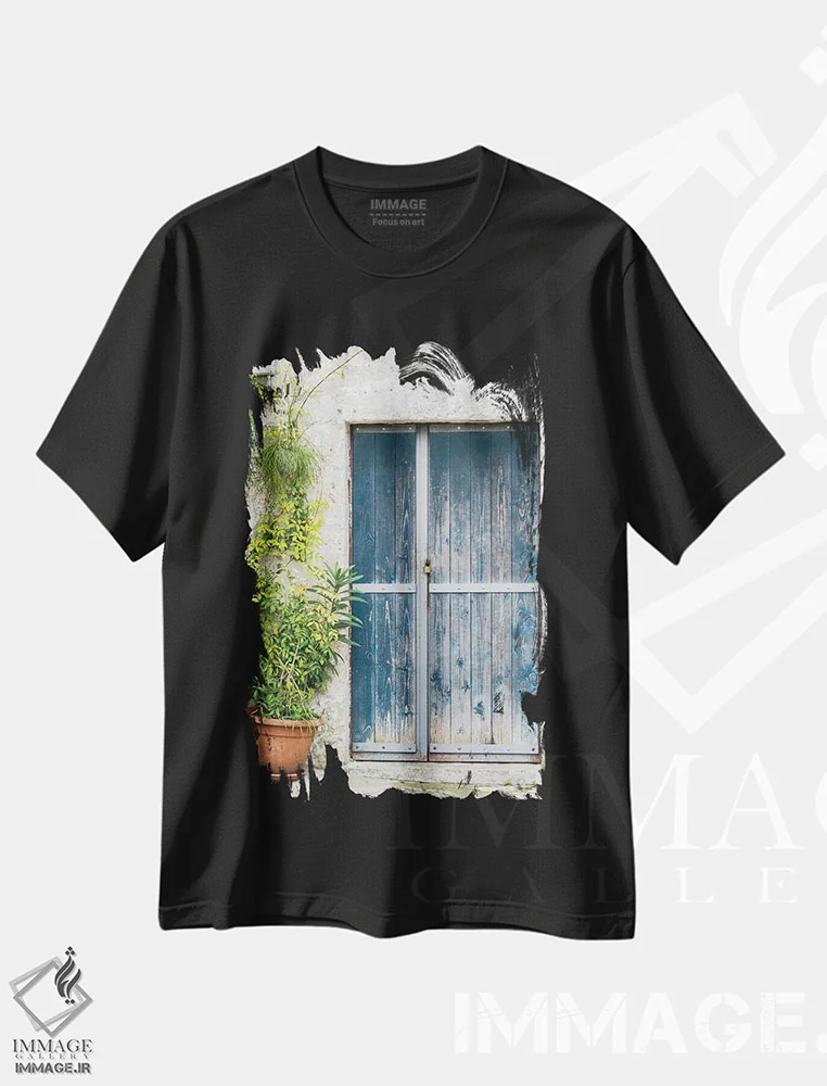 تیشرت مشکی طرح دار آثار جولی اگِرز - immage.ir تیشرت طرح دار Obidos, Portugal,ورودی احاطه شده با شاخه های گل کاغذی، اوبیدوش، پرتغال اثر جولی اگِرز