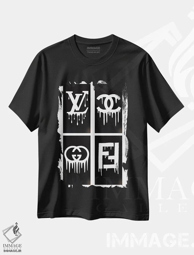 تیشرت مشکی طرح دار آثار جولی شریبر - immage.ir تیشرت طرح دار Chanel, & Louis Vuitton,سفر خرید از گوچی، شنل و لوییز ویتون اثر جولی شریبر