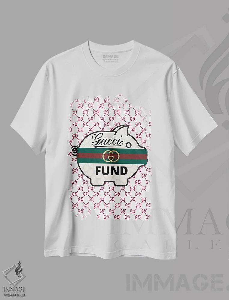 تیشرت سفید طرح دار سرمایه گذاری گوچی، هنر دیجیتال اثر جولی شریبر | فروشگاه ایماژ تیشرت طرح دار سرمایه گذاری گوچی اثر جولی شریبر