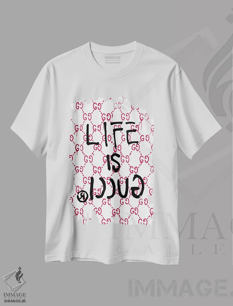 تیشرت سفید طرح دار زندگی گوچی است، هنر دیجیتال اثر جولی شریبر | فروشگاه ایماژ تیشرت طرح دار زندگی گوچی است اثر جولی شریبر