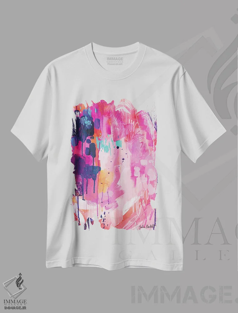 تیشرت سفید طرح دار کشیده شدن به هر طرف اثر جولیا بادو | فروشگاه ایماژ تیشرت طرح دار کشیده شدن به هر طرف اثر جولیا بادو