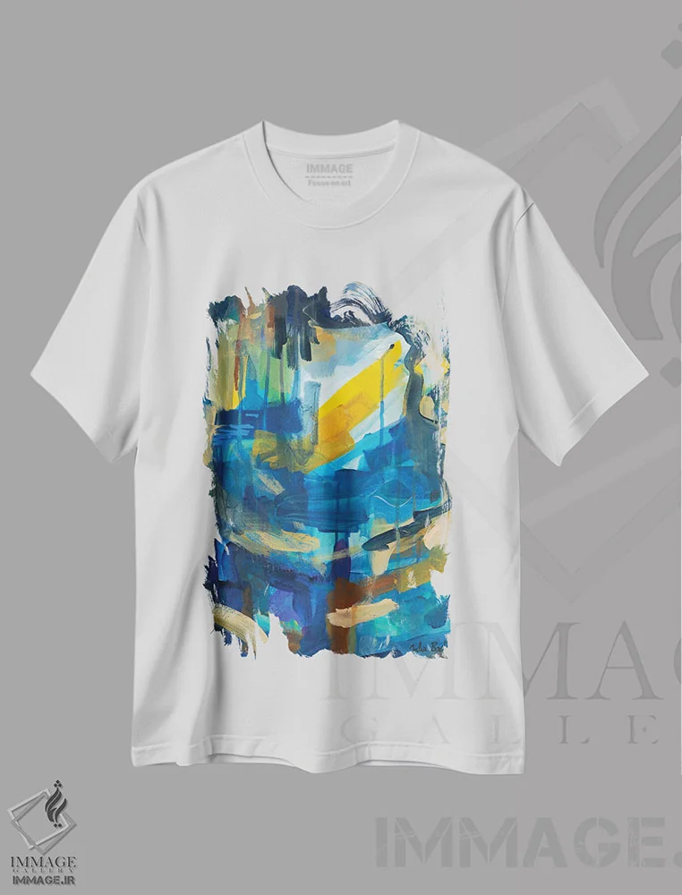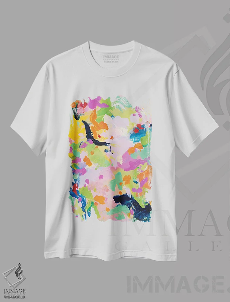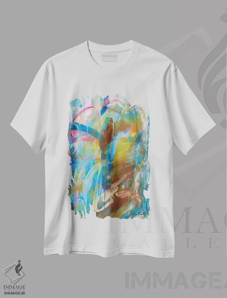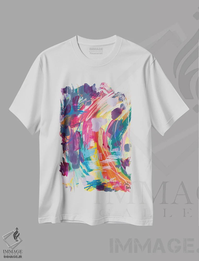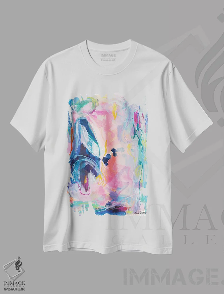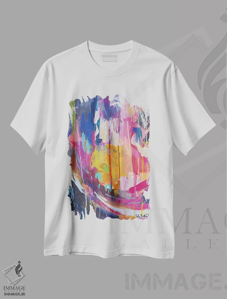 تیشرت سفید طرح دار خلق کن اثر جولیا بادو | فروشگاه ایماژ تیشرت طرح دار خلق کن اثر جولیا بادو