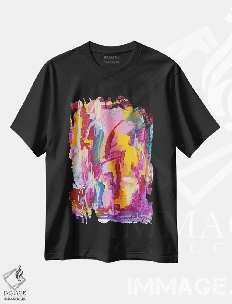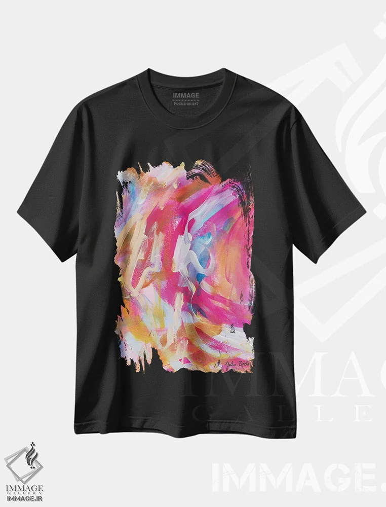 تیشرت مشکی طرح دار حجوم احساسات اثر جولیا بادو | فروشگاه ایماژ تیشرت طرح دار حجوم احساسات اثر جولیا بادو