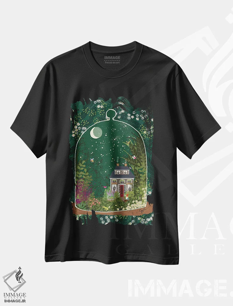 تیشرت مشکی طرح دار تراریوم ۳، دکور بوهمی اثر جوی لافرم | فروشگاه ایماژ تیشرت طرح دار تراریوم اثر جوی لافرم