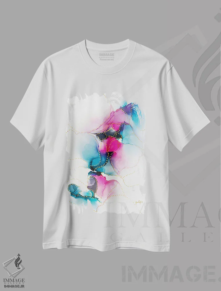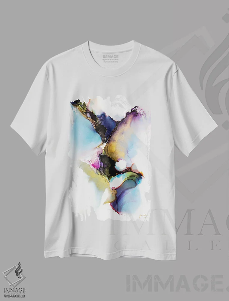 تیشرت سفید طرح دار تاریکی زیبای من، آبستره اثر جیمی پومرانز | فروشگاه ایماژ