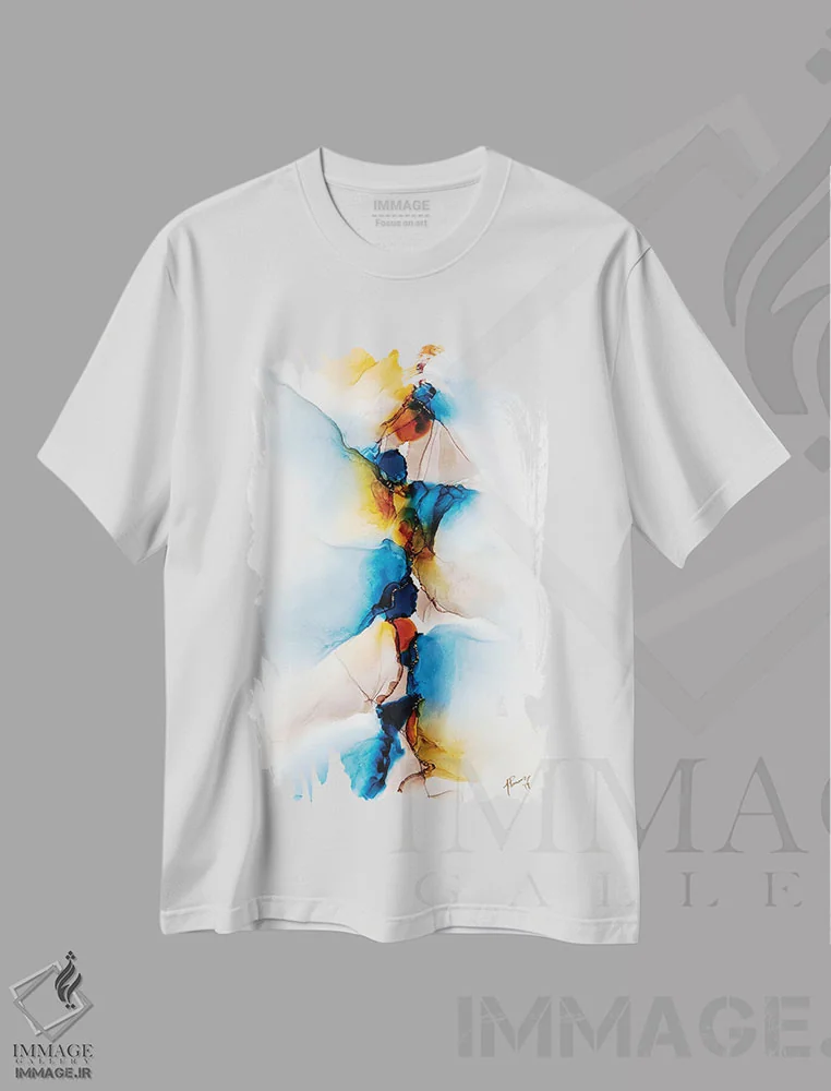 تیشرت سفید طرح دار اندیشهٔ بیداری، آبستره اثر جیمی پومرانز | فروشگاه ایماژ