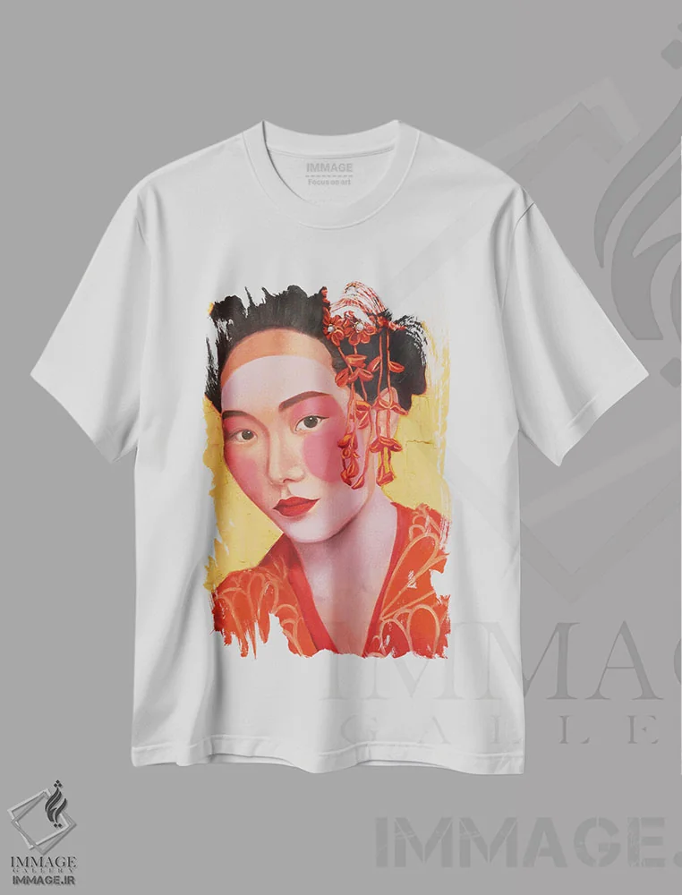 تیشرت طرح دار پرتره گیشا در کیمونو اثر جین لانتسمن