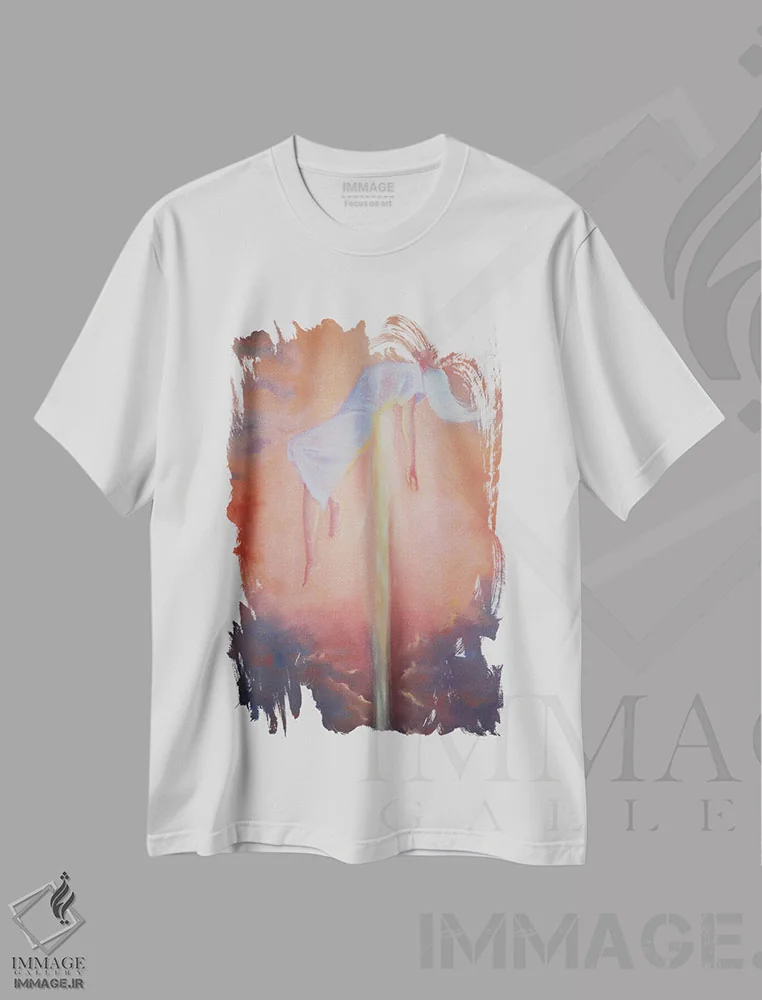 تیشرت سفید طرح دار به سوی نور، دکور معاصر اثر جین لانتسمن | فروشگاه ایماژ