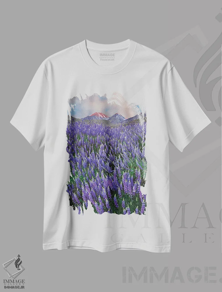 تیشرت سفید طرح دار آثار جینز گالری - immage.ir تیشرت طرح دار California, Sierra Nevada Range. Blooming Inyo bush lupine flowers,شکوفایی گل های لوپین اینیو اثر جینز گالری