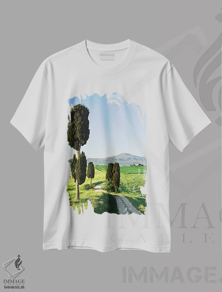 تیشرت سفید طرح دار آثار جینز گالری - immage.ir تیشرت طرح دار Tuscany. Landscape with villa,ایتالیا، توسکانی. چشم انداز با ویلا اثر جینز گالری