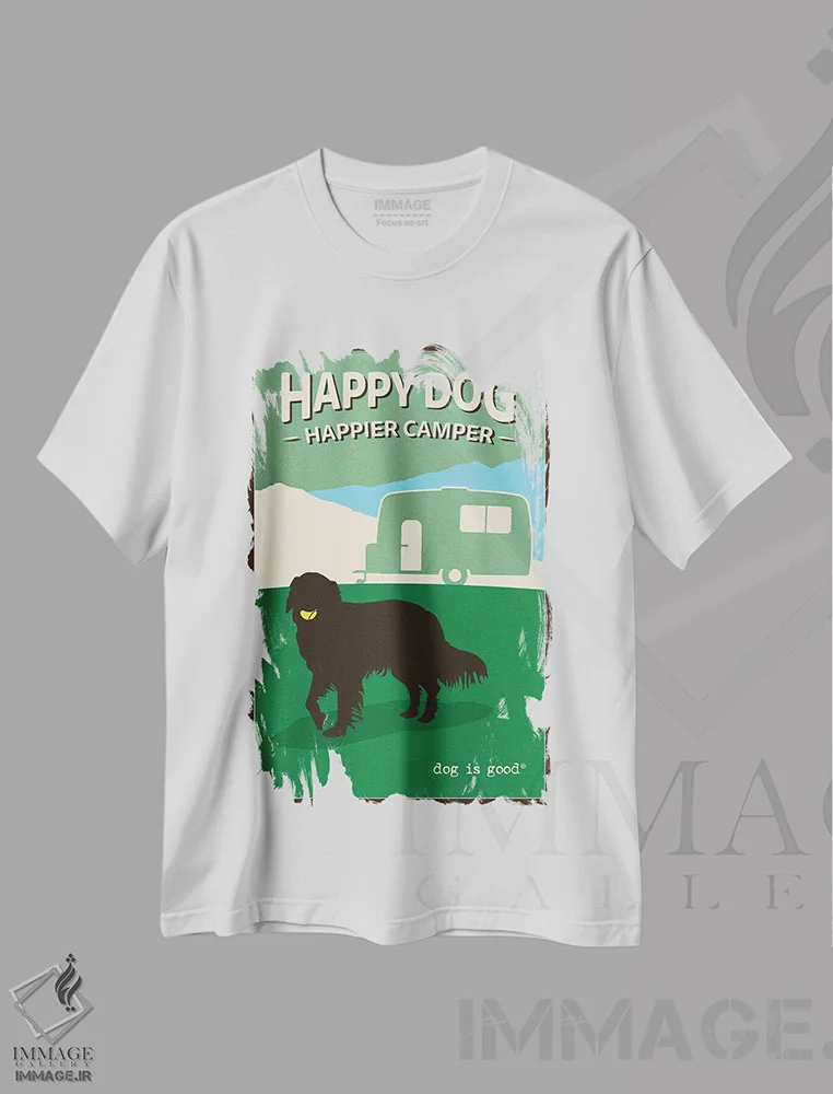 تیشرت سفید طرح دار سگ خوشحال، چادرنشین خوشحال تر، هنر دیجیتال اثر داگ ایز گود اند کت ایز گود | فروشگاه ایماژ تیشرت طرح دار سگ خوشحال، چادرنشین خوشحال تر اثر داگ ایز گود اند کت ایز گود