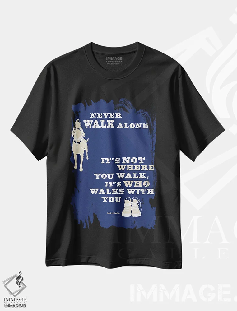 تیشرت مشکی طرح دار هرگز تنها قدم نزن II، هنر دیجیتال اثر داگ ایز گود اند کت ایز گود | فروشگاه ایماژ تیشرت طرح دار هرگز تنها قدم نزن II اثر داگ ایز گود اند کت ایز گود