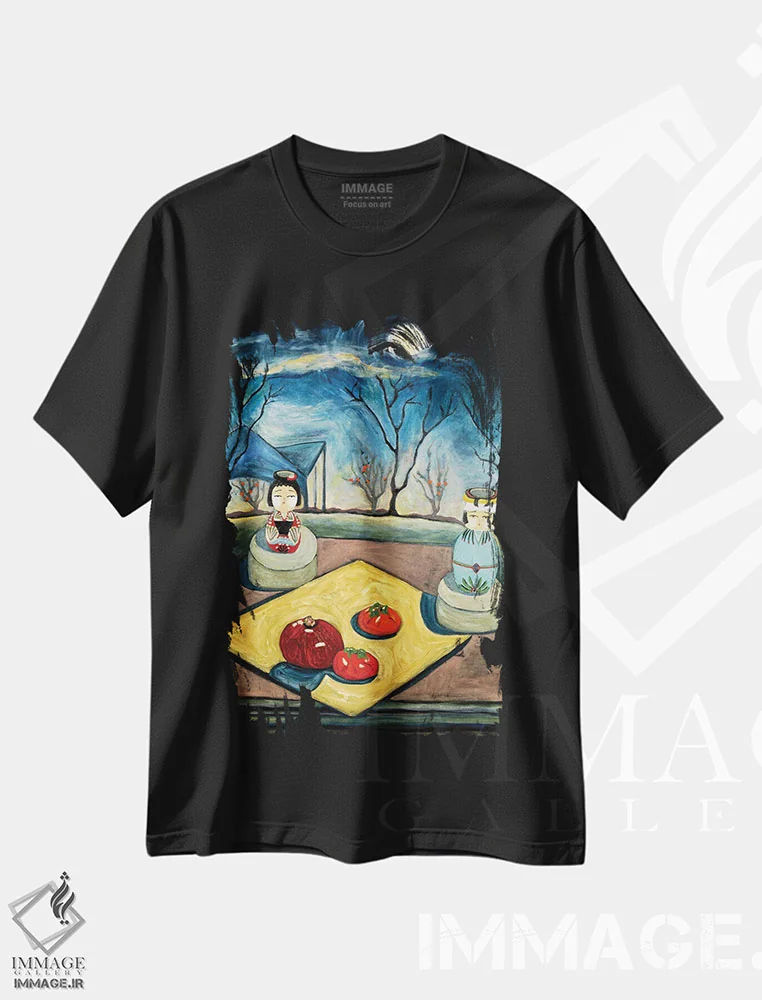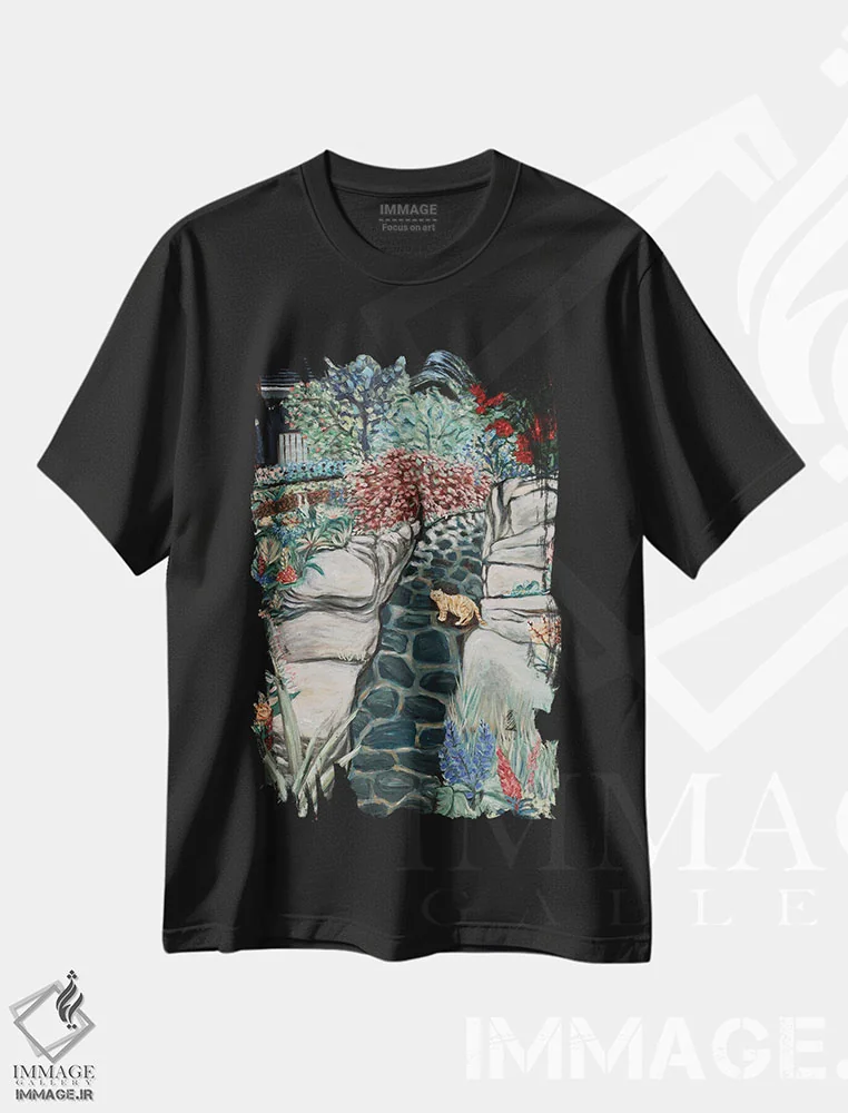 تیشرت مشکی طرح دار باغ همسایه، هنر فاخر معاصر اثر دبورا ایو آلاسترا | فروشگاه ایماژ تیشرت طرح دار باغ همسایه اثر دبورا ایو آلاسترا