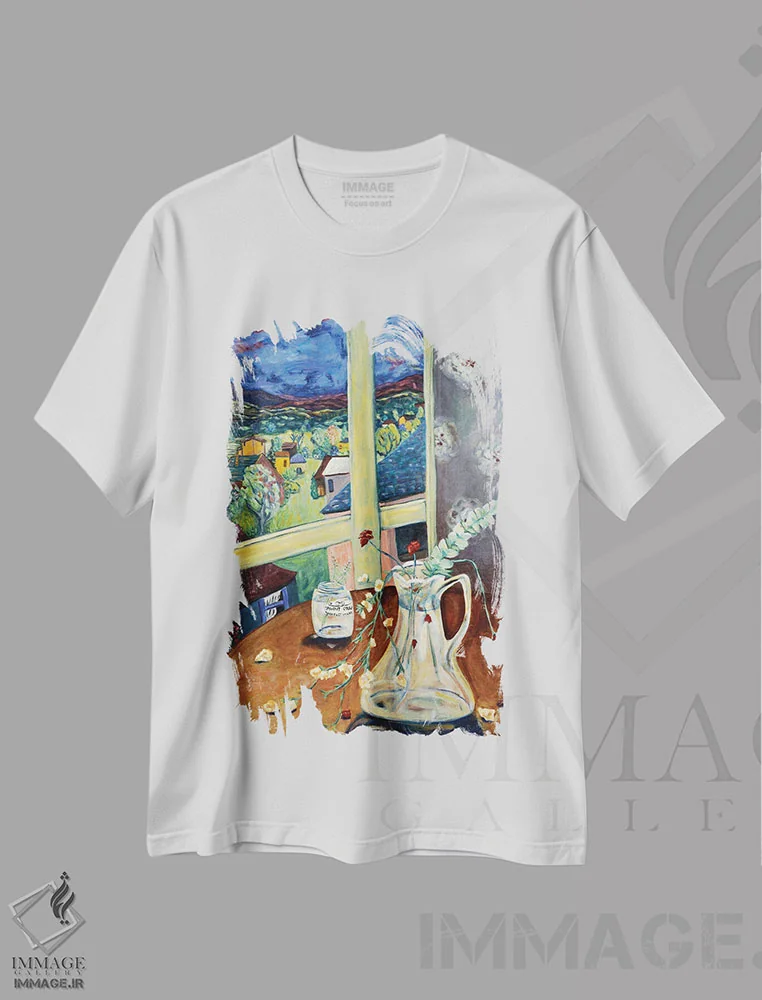 تیشرت سفید طرح دار پنجرهٔ قدیمی، مدیوم اثر دبورا ایو آلاسترا | فروشگاه ایماژ تیشرت طرح دار پنجرهٔ قدیمی اثر دبورا ایو آلاسترا