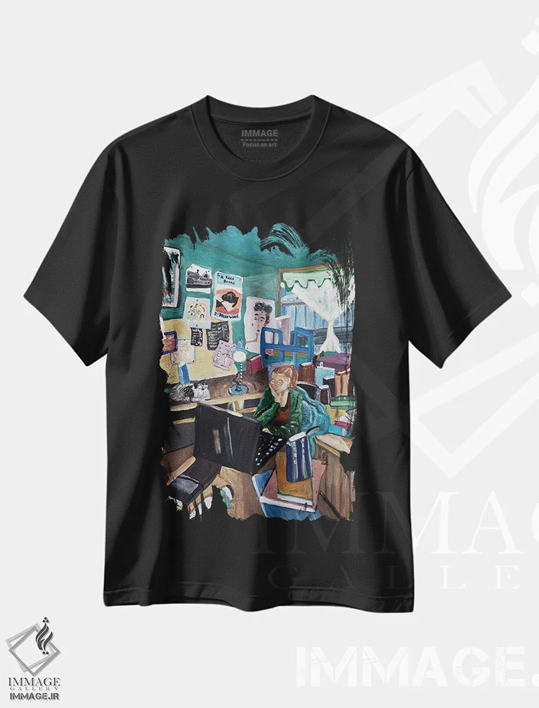 تیشرت مشکی طرح دار نمای داخلی، هنر فاخر معاصر اثر دبورا ایو آلاسترا | فروشگاه ایماژ تیشرت طرح دار نمای داخلی اثر دبورا ایو آلاسترا