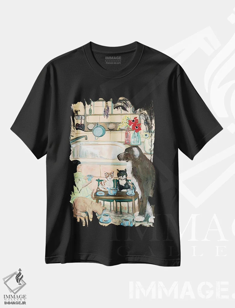 تیشرت مشکی طرح دار در خانه، هنر فاخر معاصر اثر دبورا ایو آلاسترا | فروشگاه ایماژ تیشرت طرح دار در خانه اثر دبورا ایو آلاسترا