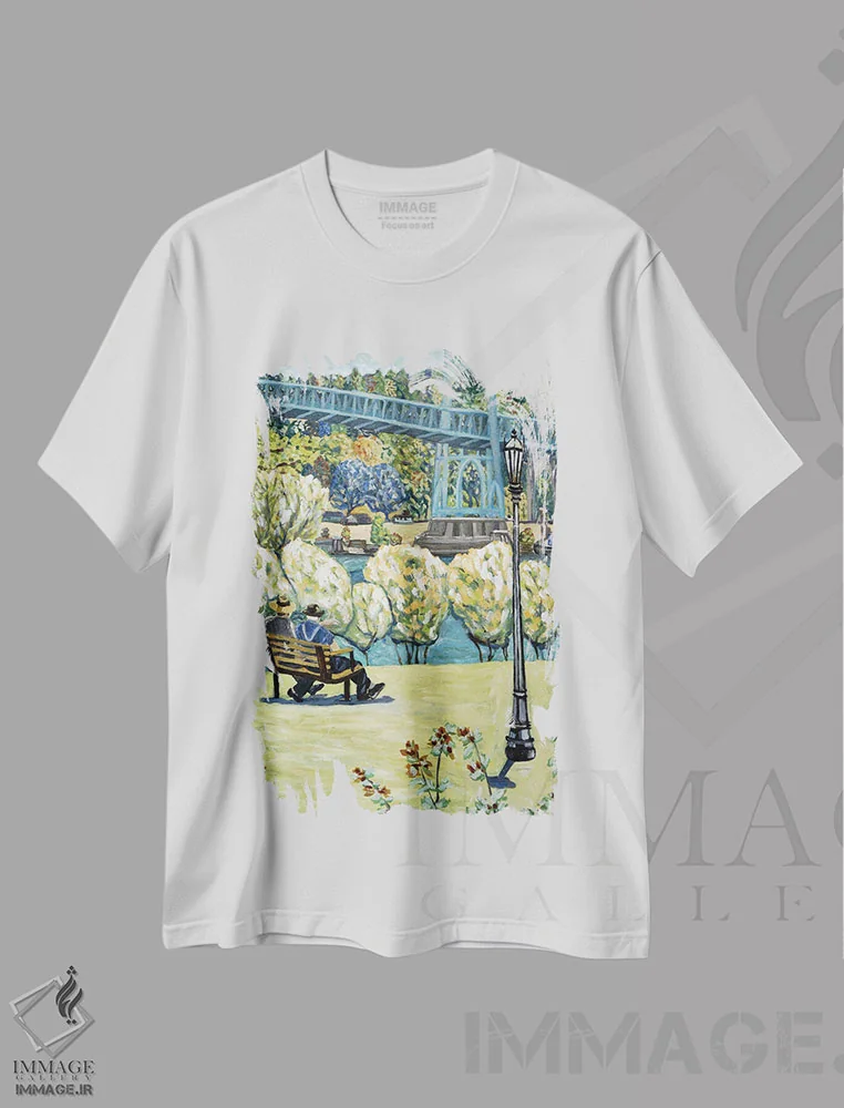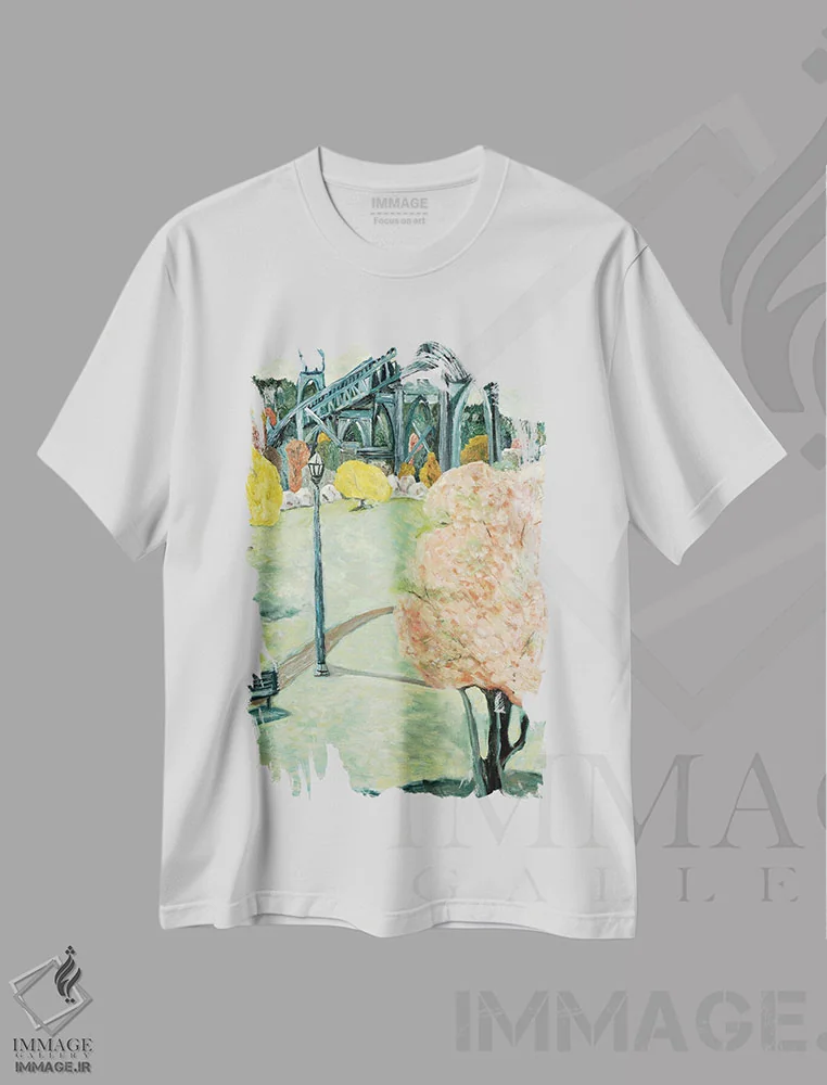 تیشرت سفید طرح دار پارک کاتدرال، هنر فاخر معاصر اثر دبورا ایو آلاسترا | فروشگاه ایماژ تیشرت طرح دار پارک کاتدرال اثر دبورا ایو آلاسترا