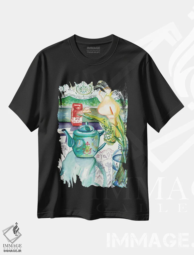 تیشرت مشکی طرح دار چای آنتیک جدید، تزئینی اثر دبورا ایو آلاسترا | فروشگاه ایماژ تیشرت طرح دار چای آنتیک جدید اثر دبورا ایو آلاسترا