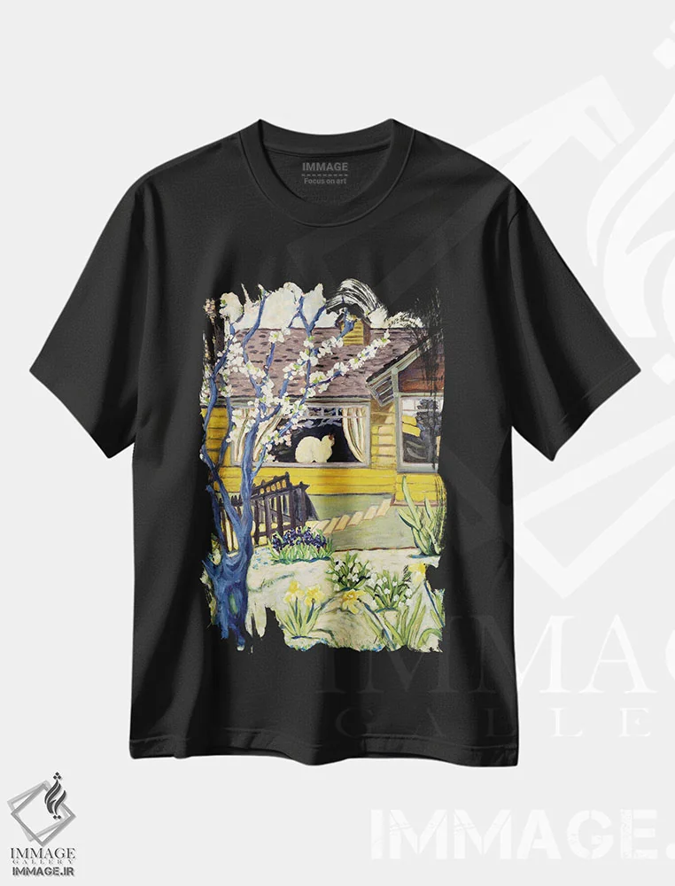 تیشرت مشکی طرح دار خانهٔ زرد، هنر فاخر معاصر اثر دبورا ایو آلاسترا | فروشگاه ایماژ تیشرت طرح دار خانهٔ زرد اثر دبورا ایو آلاسترا