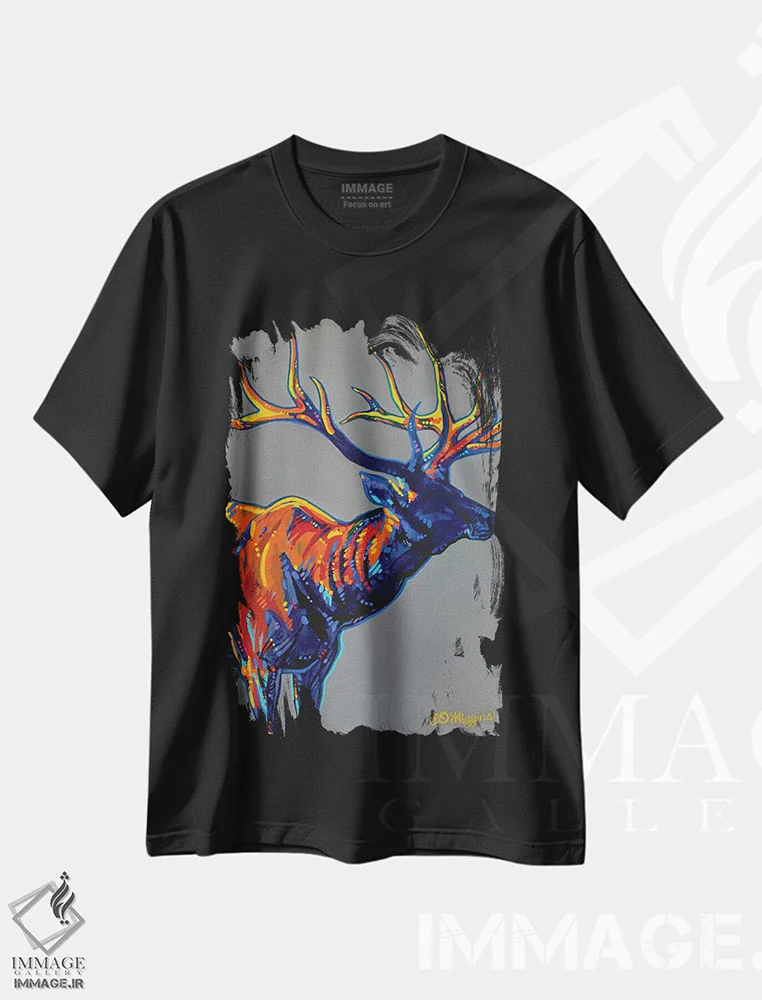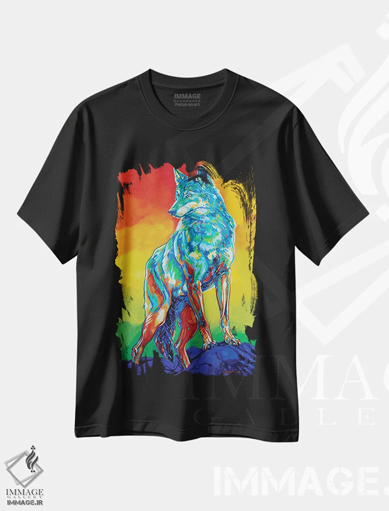 تیشرت مشکی طرح دار کایوت، هنر فاخر معاصر اثر دریک هیگینز | فروشگاه ایماژ تیشرت طرح دار کایوت اثر دریک هیگینز