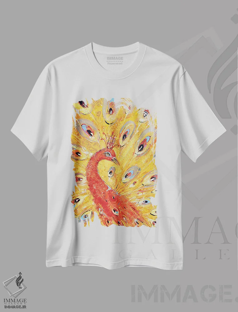 تیشرت سفید طرح دار طاووس قرمز، مدیوم اثر دمیتری اسپیروس | فروشگاه ایماژ تیشرت طرح دار طاووس قرمز اثر دمیتری اسپیروس