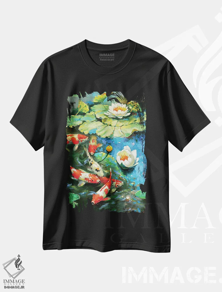 تیشرت مشکی طرح دار نیلوفر آبی، مدیوم اثر دمیتری اسپیروس | فروشگاه ایماژ تیشرت طرح دار نیلوفر آبی اثر دمیتری اسپیروس