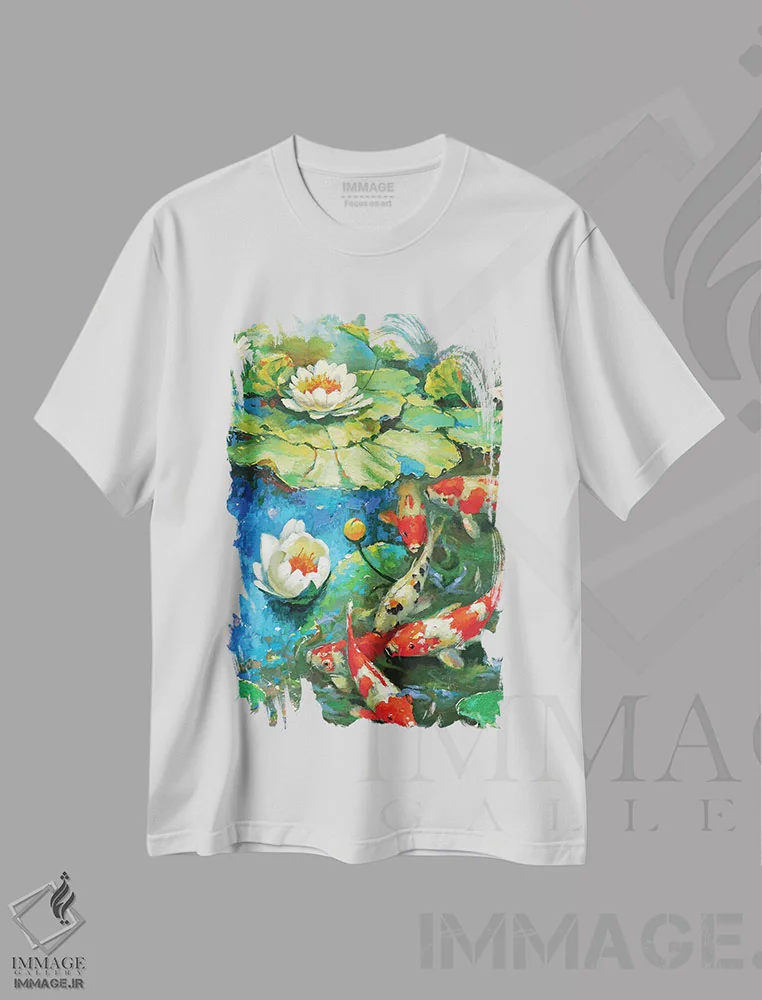 تیشرت سفید طرح دار نیلوفر آبی، مدیوم اثر دمیتری اسپیروس | فروشگاه ایماژ تیشرت طرح دار نیلوفر آبی اثر دمیتری اسپیروس
