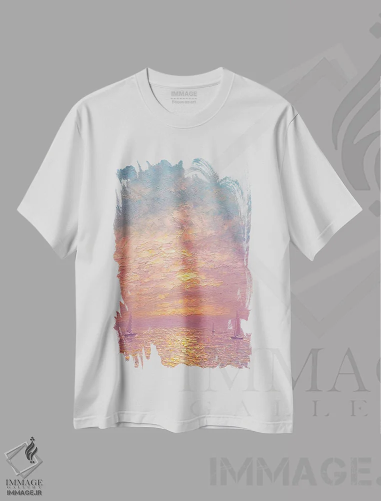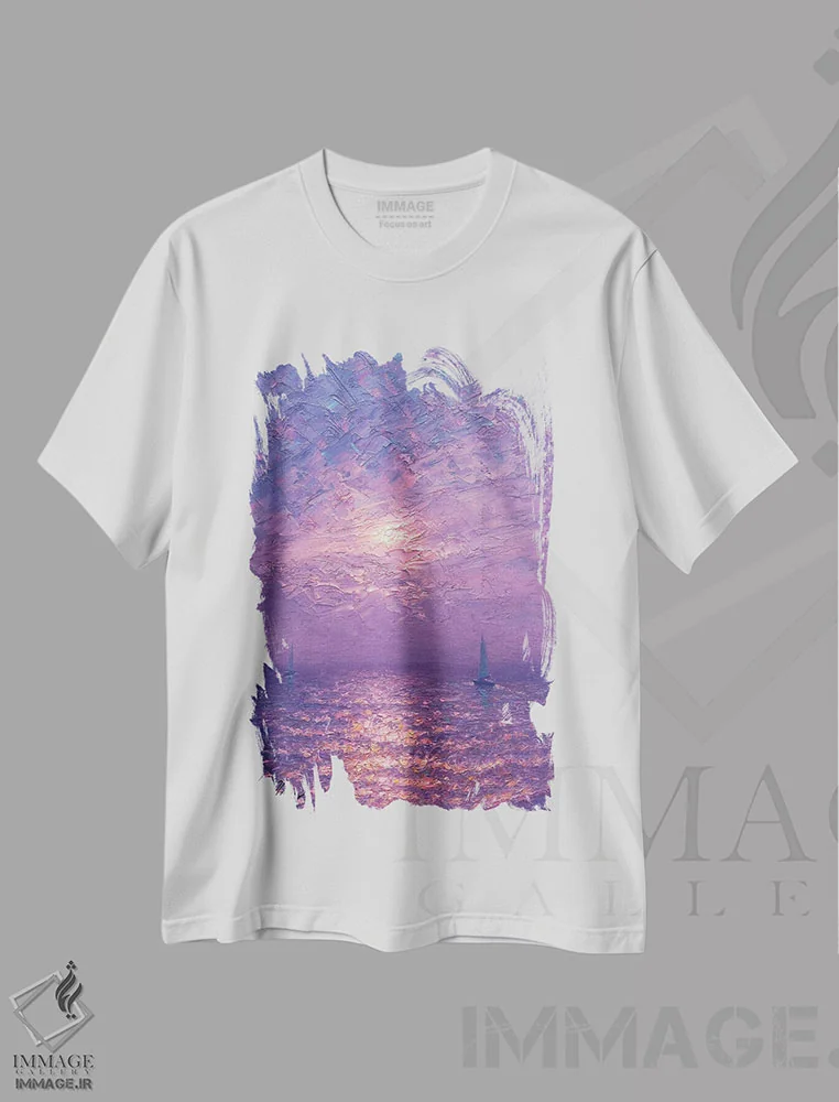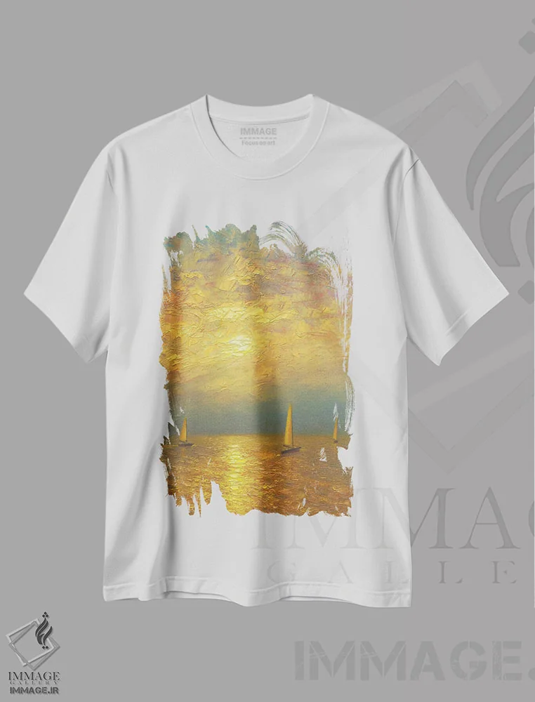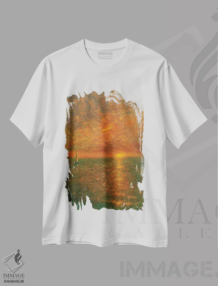 تیشرت سفید طرح دار غروب چهارم، هنر فاخر معاصر اثر دمیتری اولین | فروشگاه ایماژ تیشرت طرح دار غروب چهارم اثر دمیتری اولین