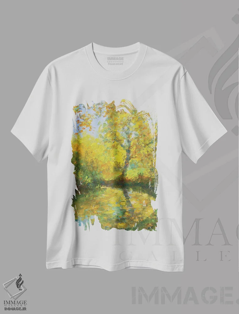 تیشرت سفید طرح دار رودخانه بارانی III، هنر فاخر معاصر اثر دمیتری اولین | فروشگاه ایماژ تیشرت طرح دار رودخانه بارانی III اثر دمیتری اولین