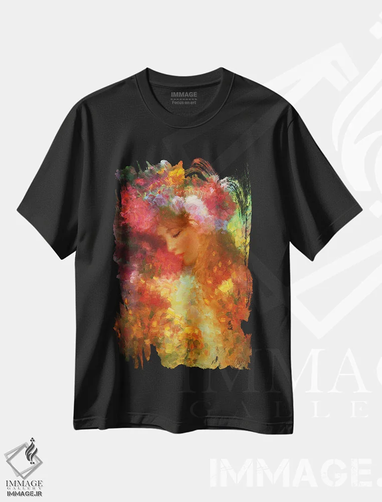 تیشرت مشکی طرح دار ملکهٔ گل ها III، هنر فاخر معاصر اثر دمیتری اولین | فروشگاه ایماژ تیشرت طرح دار ملکهٔ گل ها III اثر دمیتری اولین