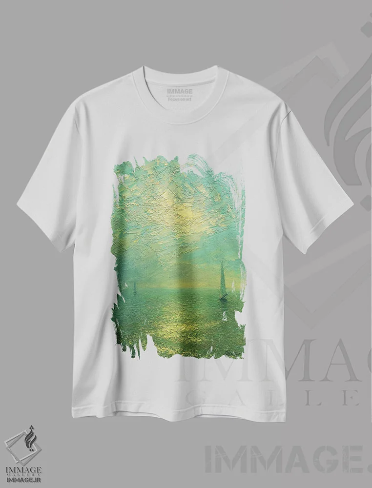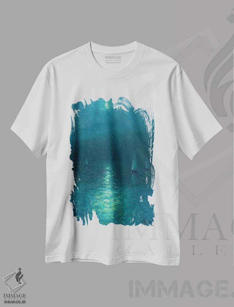 تیشرت سفید طرح دار دریای زمردین، هنر فاخر معاصر اثر دمیتری اولین | فروشگاه ایماژ تیشرت طرح دار دریای زمردین اثر دمیتری اولین